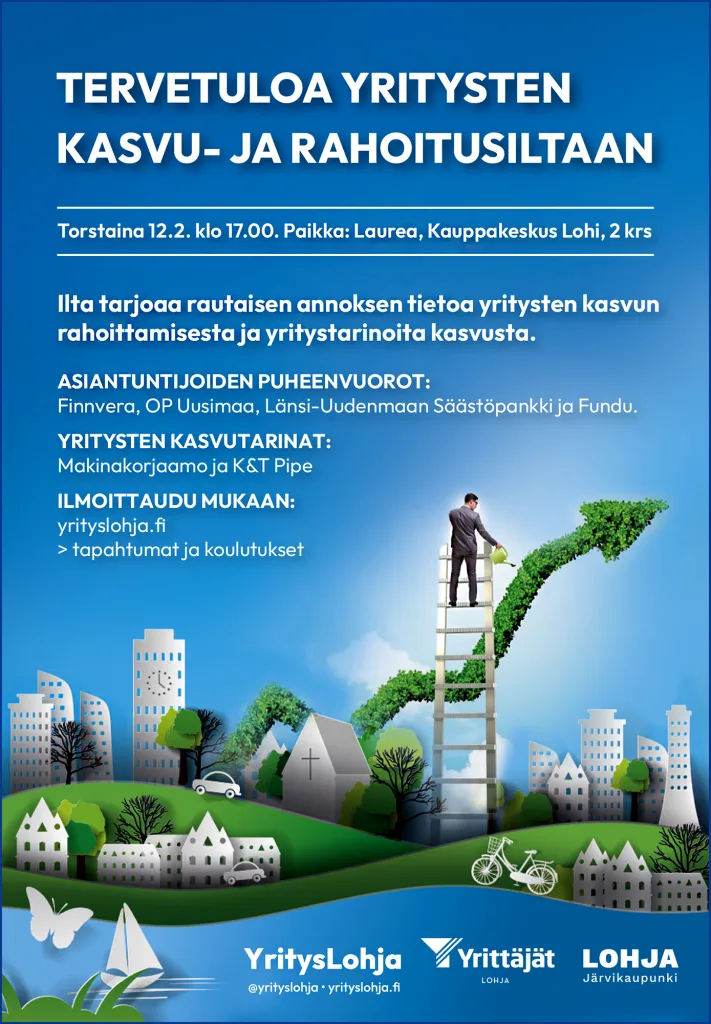 Tilaisuuden järjestäjinä yhteistyössä Lohjan kaupungin yrityspalvelut YritysLohja ja Lohjan Yrittäjät.