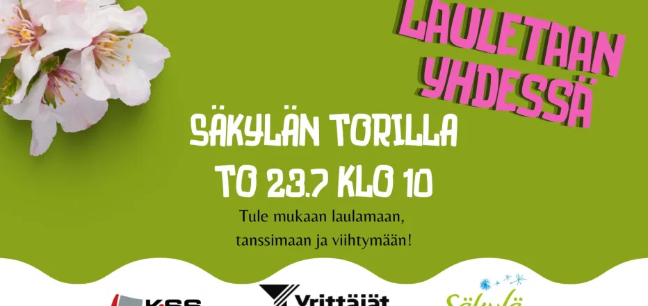 Perinteinen yhteislaulutilaisuus ”Lauletaan Yhdessä”, Säkylän torilla 23.7.26 klo 10.00. Järjestäjänä Säkylän Yrittäjät, Säkylän kunta ja Köyliön-Säkylän Sähkö Oy.