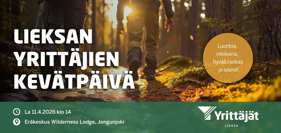 Tapahtuman järjestää Lieksan Yrittäjät ja se on suunnattu Lieksan Yrittäjien jäsenille sekä aveceille. Paikkoja on rajoitetusti – ilmoittaudu mukaan viimeistään tiistaina 31.3.