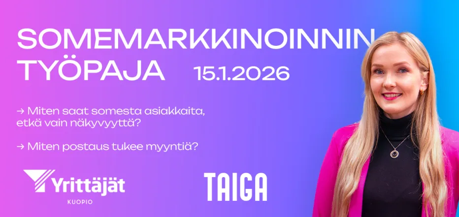 Miten saat somesta asiakkaita, etkä vain näkyvyyttä? Miten postaus tukee myyntiä? Mainostoimisto Taigan käytännönläheisessä työpajassa yrittäjä Pia Hottisen johdolla pureudutaan siihen, miten sosiaalinen media tukee aidosti myyntiä, ei vain tykkäyksiä ja seuraajamääriä.