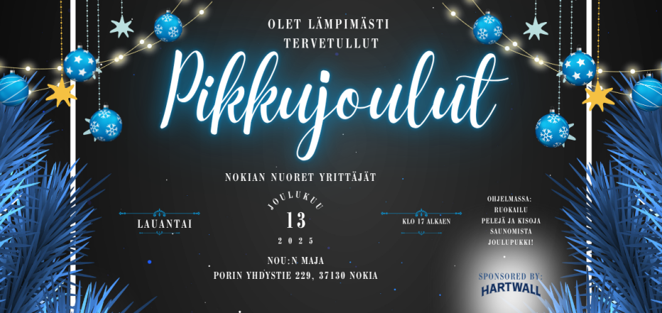 Tänäkin vuonna on Nynnyjen pikkujouluissa luvassa kisailua, pelejä, maistuvat sapuskat ja saataisko me jälleen se joulupukkikin käymään? Kuka olikaan beerpong mestari ja kenellä hoksottimet pelaa parhaiten? 😉 Sauna on lämmin heti ruokailun jälkeen! Sekasauna, joten uikkarit mukaan. Hartwall tarjoaa pahimpaan janoon suun kostuketta, mutta omilla eväspulloilla on jälleen myös hyvä varautua iltaan.