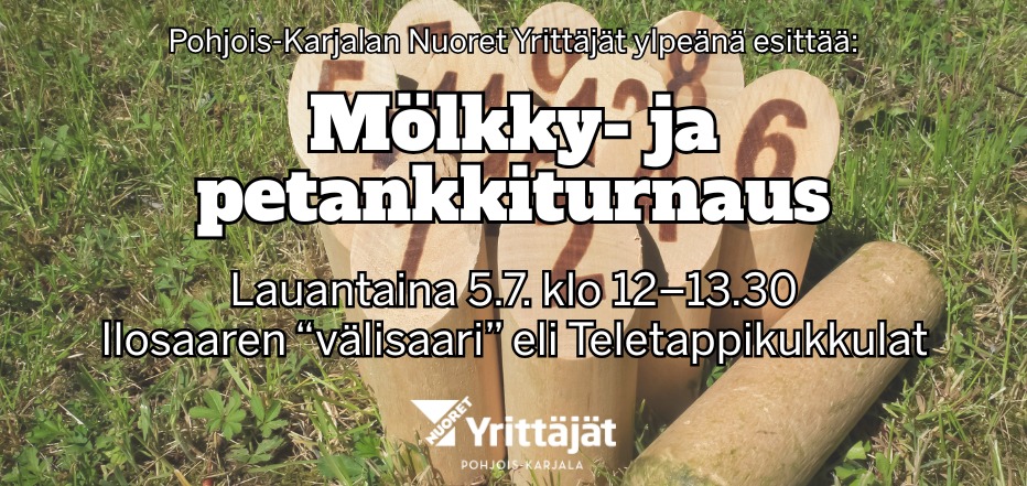 Pohjois-Karjalan Nuoret Yrittäjät kutsuvat sinuun perinteiseen, Ilovaarin aikaan järjestettävään leikkimieliseen mölkky- ja petankkiturnaukseen Joensuun Kirkkopuiston vehreille kukkuloille.