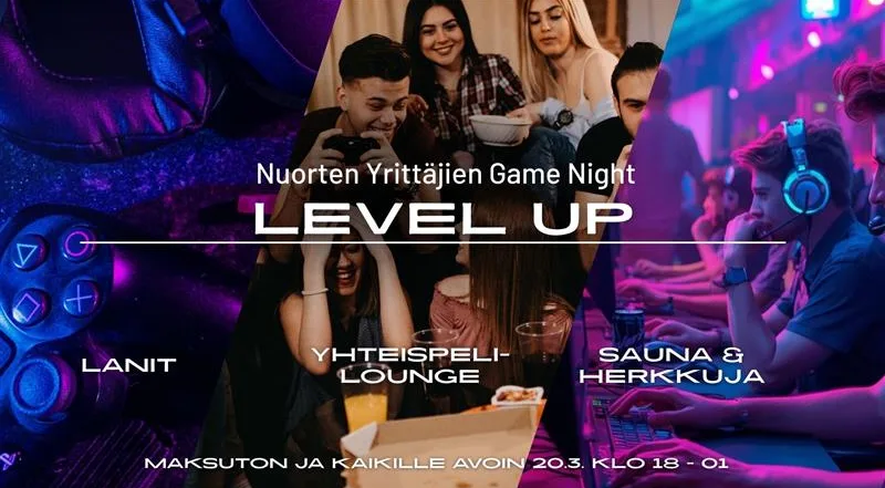 Unohda pönötys! Level Up your business game ja tule mukaan iltaan, jossa samanhenkiset tyypit kokoontuu saman katon alle 🚀 — LANit, yhteispeli-lounge, saunomista ja lautapelejä.