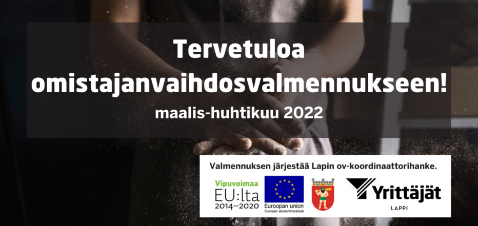 Tervetuloa omistajanvaihdosvalmennukseen! Valmennus toteutetaan kolmiosaisena etävalmennuksena Teams-videoyhteyden kautta. Ilmoittautuminen päättyy 25.2.2022.