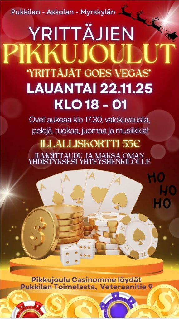 Tervetuloa yhden illan matkalle Vegasin casinon sykkeeseen Pukkilan Toimelaan 22.11.2025.
