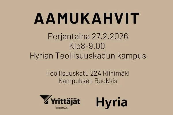 Aamukahvien aikana esittelyssä Hyrian koulutustarjontaa sekä käymme avointa keskustelua yrittäjien toiveista ja tarpeista Hyrian koulutuksiin liittyen. Tilaisuus tarjoaa hyvän mahdollisuuden vaikuttaa tulevaan koulutussisältöön ja verkostoitua muiden yrittäjien kanssa rennossa tunnelmassa.