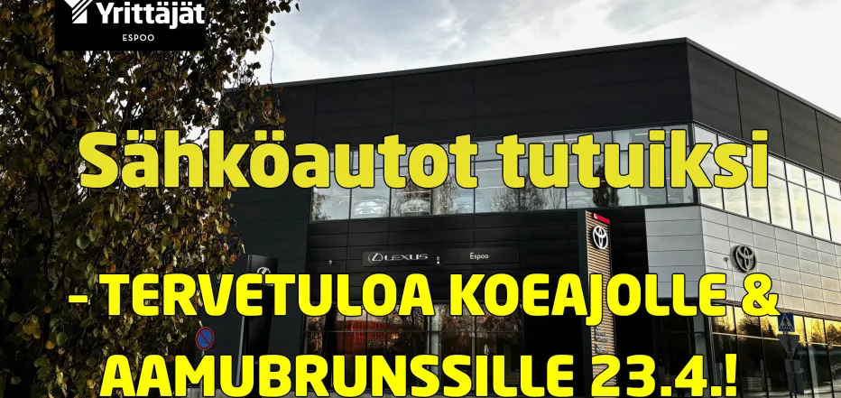 – Paikalle voi saapua joustavasti oman aikataulun mukaan. - Paikka: Toyota Espoo / Lexus Espoo, Luomanportti 2, 02200 Espoo.