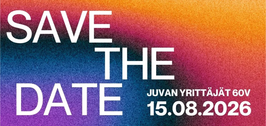 Vapaa-aika ja juhlat SAVE THE DATE – Juvan Yrittäjät 60 vuotta 15.8.2026 klo 00:00 – 23:59 Juva Juvan Yrittäjät Elokuussa juhlitaan Juvan Yrittäjien 60-vuotista taivalta! Laita päivämäärä jo ylös ja seuraa ilmoittelua! { "name":"SAVE THE DATE – Juvan Yrittäjät 60 vuotta", "description":"", "startDate":"2026-08-15", "startTime":"00:00", "endDate":"2026-08-15", "endTime":"23:59", "location":"", "label":"Lisää kalenteriin", "options":[ "Apple", "Google", "iCal", "Microsoft365", "MicrosoftTeams", "Outlook.com", "Yahoo" ], "inline":true, "listStyle":"modal", "trigger":"click", "timeZone":"Europe/Helsinki", "iCalFileName":"Yrittajat.fi - SAVE THE DATE – Juvan Yrittäjät 60 vuotta" } Maksuton Juva Jaa Kopioitu leikepöydälle