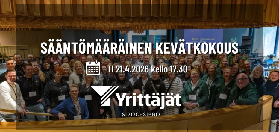 Tervetuloa mukaan Sipoon Yrittäjät ry:n sääntömääräiseen kevätkokoukseen!