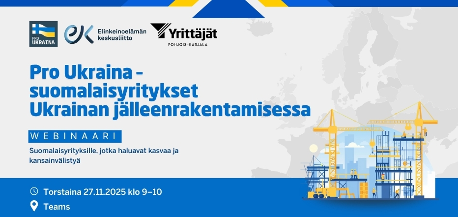 Webinaarin järjestävät Pohjois-Karjalan Yrittäjät ja Elinkeinoelämän keskusliitto EK. Ilmoittaudu mukaan viimeistään maanantaina 24.11.