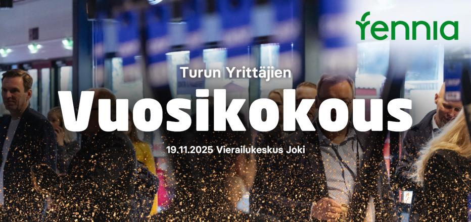 Tervetuloa Turun Yrittäjien sääntömääräiseen vuosikokoukseen. Vuoden 2025 Turun yrittäjien vuosikokouksessa valitaan uusi hallitus ja puheenjohtaja sekä nautitaan virvokkeista cocktail-tilaisuudessa. Tapahtumaa mahdollistamassa Fennia.