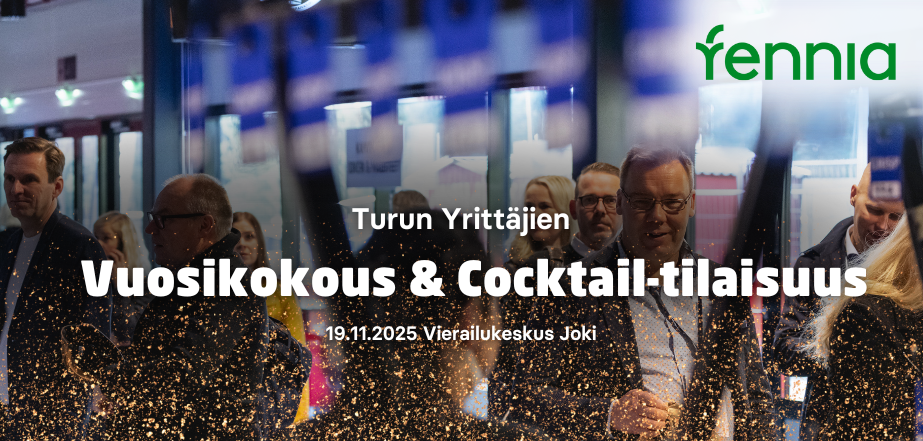 Tervetuloa Turun Yrittäjien sääntömääräiseen vuosikokoukseen. Vuoden 2025 Turun yrittäjien vuosikokouksessa valitaan uusi hallitus ja puheenjohtaja. Tapahtumaa mahdollistamassa Fennia.