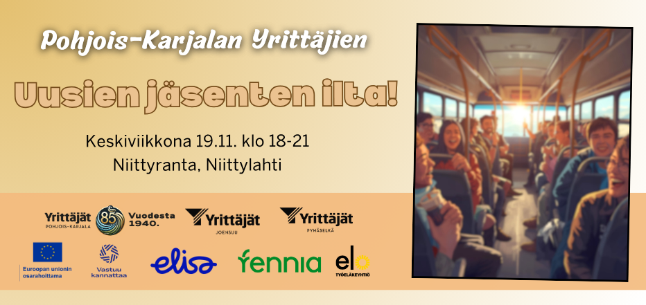 Tapahtuma on maksuton, mutta tarjoilun järjestämistä varten ilmoittaudu mukaan viimeistään perjantaihin 7.11. mennessä alta tai joonas.hiltunen@yrittajat.fi, p. 050 448 8468. Mukaan mahtuu 50 ensimmäiseksi ilmoittautunutta yrittäjää.