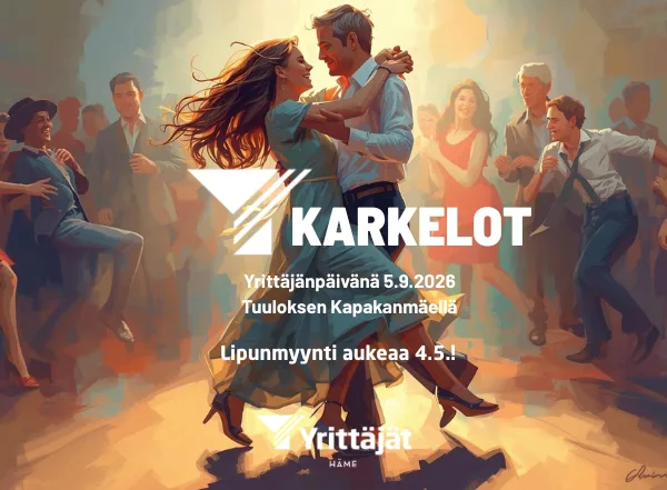 Y-Karkelot kokoaa Yrittäjät yhteen Tuuloksen Kapakanmäelle lavatanssien pyörteisiin, kohtaamaan, inspiroitumaan ja lataamaan uutta energiaa. Illan aikana myös palkitsemme ansioituneita yrittäjiä.