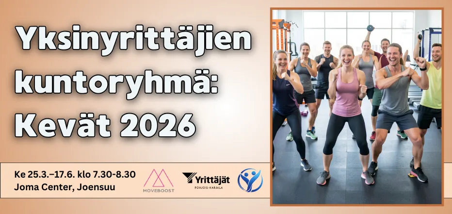 Haluatko lisää energiaa arkeen, säännöllistä liikettä viikkoon ja rennon tavan tavata muita yrittäjiä? Yksinyrittäjien kuntoryhmä tarjoaa matalan kynnyksen mahdollisuuden liikkua yhdessä, ilman suorituspaineita, mutta hyvällä fiiliksellä ja ammattitaitoisessa ohjauksessa.
