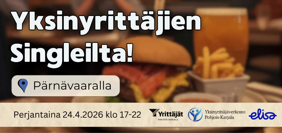 Singleilta on maksuton ja tarjoilua varten pyydämme ennakkoilmoittautumisen 17.4.2026 mennessä (mukaan mahtuu 40 ensimmäiseksi ilmoittautunutta). Lisätiedot joonas.hiltunen@yrittajat.fi p. 050 448 8468. Tapahtuman järjestää Pohjois-Karjalan Yrittäjät yhdessä Elisan kanssa.