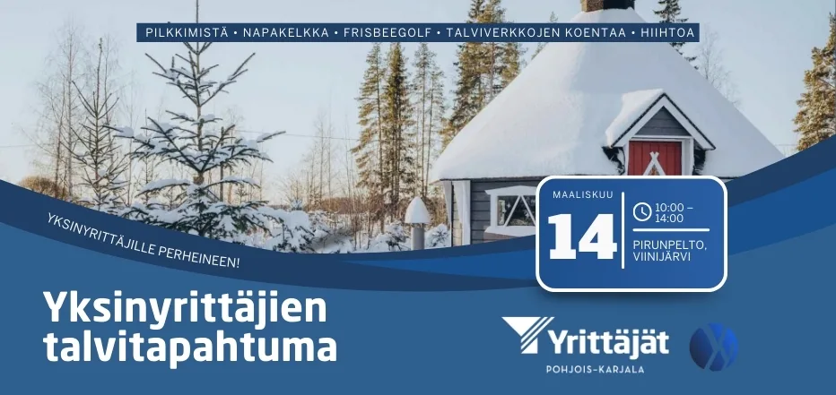 Ilmoittaudu mukaan viimeistään sunnuntaina 8.3. Yhteistyössä Monipalvelu Kari Väisänen sekä Pohjois-Karjalan Yrittäjien yksinyrittäjäverkosto.