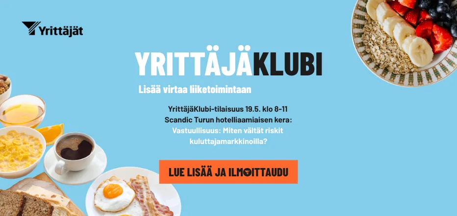 Ti 19.5. klo 8-11 Scandic Julia, Turku: YrittäjäKlubin teemana vastuullisuus kuluttajamarkkinoilla. Katso tilaisuuden ohjelma alta!