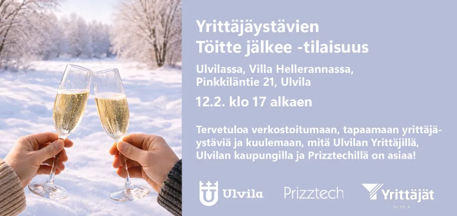 Tervetuloa verkostoitumaan, tapaamaan yrittäjäystäviä ja kuulemaan, mitä asiaa on Ulvilan kaupungilla, Ulvilan Yrittäjillä ja Prizztechillä!