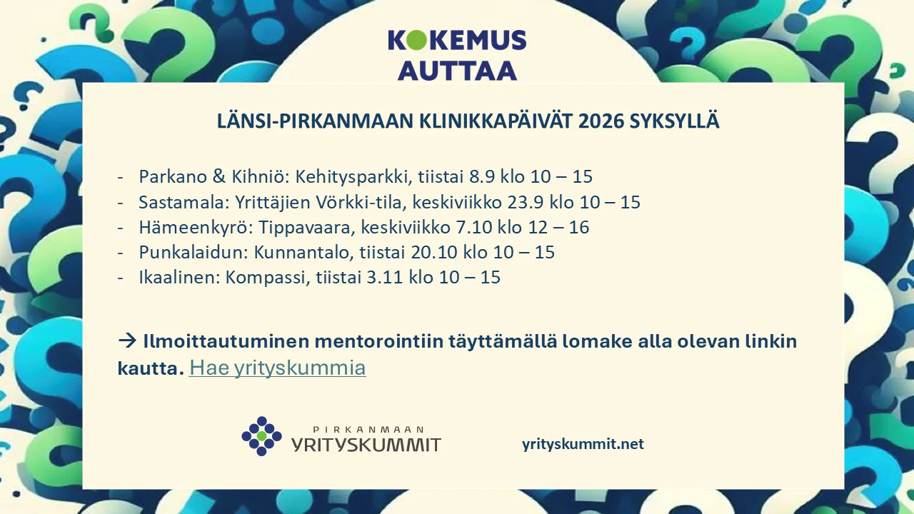 Tule tapaamaan yrityskummeja 3.11. klo 10–15 ja saa maksutonta tukea liiketoimintasi kehittämiseen!