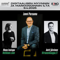 Digitaalisen myynnin ja markkinoinnin koulutusilta Keskiviikkona 9.4. klo 18-20:30 Kino Piispanristi, Jännekatu 2, Kaarina Tapahtuman järjestäjä: Kaarinan Kehitys Oy Tapahtuman…
