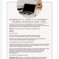Hybridityö ja työkyvyn tukeminen -tapahtuma järjestetään Helsingissä 7.9.2022 klo 12.00 - 16.00 Scandic Grand Central Helsingin tiloissa. Tapahtumassa tärkeää asiaa…