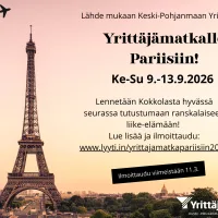 Yrittäjämatka Pariisiin 9.–13.9.2026 – verkostoidu, inspiroidu ja tutustu liike-elämään! Lähde Keski-Pohjanmaan Yrittäjien kanssa syksyiseen Pariisiin! Viiden päivän yrittäjämatkalla yhdistyvät elämykset,…