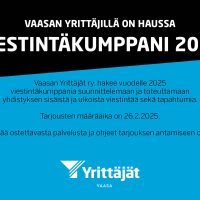 Vaasan Yrittäjät hakee vuodelle 2025 viestintäkumppania suunnittelemaan ja toteuttamaan yhdistyksen sisäistä ja ulkoista viestintää sekä tapahtumia. Ostettavaan palveluun kuuluvat: kotisivujen…