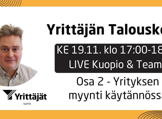 Esille nousseiden yritysten rahoitushaasteiden johdosta Savon Yrittäjät tarjoaa apua! Tervetuloa oppimaan Pekka Naumasen Yrittäjän Talouskouluun! Voit osallistua tilaisuuteen paikan päällä…
