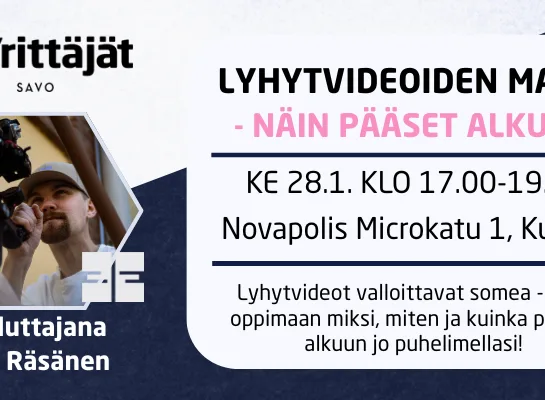 Lyhytvideot valloittavat somea ja näkyvät kaikkialla - Tule oppimaan miksi, miten ja kuinka pääset alkuun jo puhelimellasi! Eerik Visualsin Juha…