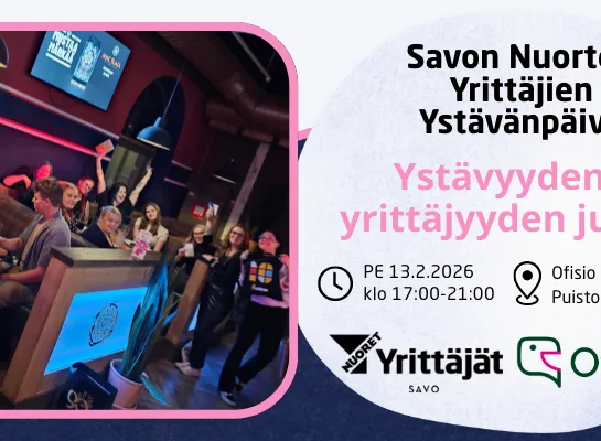Ystävyyden ja yrittäjyyden juhlaa! Tervetuloa viettämään unohtumatonta Ystävänpäivän etkoja Savon Nuorten Yrittäjien kanssa Ofisio Puistokadun mahtaviin tiloihin! 💖✨ Juhlistamme ystävyyttä,…