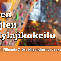 Tervetuloa Pohjois-Karjalan Nuorten Yrittäjien järjestämään kiipeilylajikokeiluun! Tämä on tilaisuutesi kokeilla kiipeilyn eri muotoja rennossa ilmapiirissä. Aloitamme lämmittelyllä sekä laji- ja…