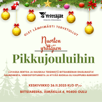 Tule viettämään Nuorten yrittäjien pikkujouluja rennolla meiningillä Biitsiareenalle 26.11. klo 17 eteenpäin! Luvassa Biitsiareenan henkilökunnan ohjaamaa rentoa ja hauskaa tekemistä!Aktiviteetin…