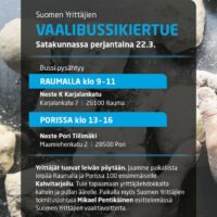 Suomen Yrittäjien vaalibussikiertue tulee Raumalle perjantaina 22.3.2019. Paikalle tulee myös toimitusjohtaja Mikael Pentikäinen, joka on tavattavissa Neste K Karjalankadun pihalla…