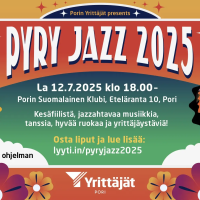 Tervetuloa Pyry Jazziin lauantaina 12.7. klo 18. Perinteinen Pyry Jazz tuo kesäfiilistä, jazzahtavaa musiikkia, tanssia, hyvää ruokaa ja yrittäjäystäviä. Svengistä…