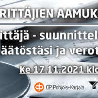 Mitä tilinpäätöksen ja verotuksen suunnittelusta tulee tietää ja mitä tulee ottaa huomioon? Tervetuloa kuulemaan aiheesta kahvikupposen ja pienen purtavan äärelle.…