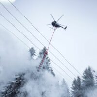 Heliwestin kopterilentäjä Rene Koivisto ohjailee yläilmoissa 300 kilon painoista sirkkelisahaa, jolla hän katkoo oksia ja puiden latvoja sähkölinjojen tieltä.