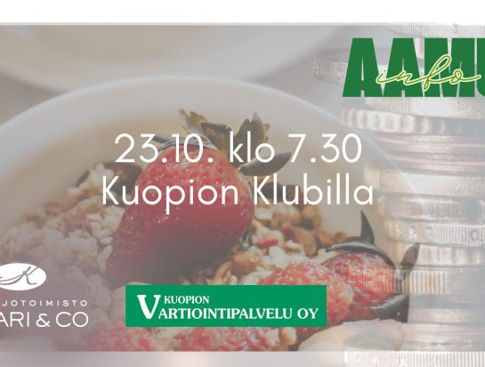 Tervetuloa Kuopion Klubin herkullisen aamiaisen äärelle 23.10. kuulemaan ja keskustelemaan Kuopion Vartiointipalvelun toimitusjohtaja Mika Kolehmaisen kanssa aiheesta uhkatilanteet, ja Asianajotoimiston…