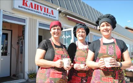 Hän on tyytyväinen, että töitä riittää ja voi tarjota töitä muillekin. Yrittäjän lisäksi kahvilassa ahertaa kolme pitkäaikaista työntekijää: Arja Mäkelä, Tiina Pohjaluoto ja Tiina Kavander.