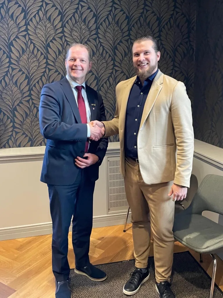 Kuvassa Oulun Yrittäjien puheenjohtaja Joonas Puurunen ja Oulun kaupunginjohtaja Ari Alatossava.