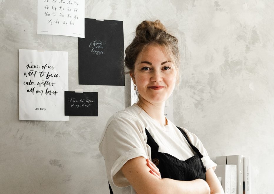 Aini Mäensivu menestyy kalligrafiaa tekevänä yrittäjänä, joka on esillä paljon. Suuret muotitalotkin ovat löytäneet hänet verkon kautta.