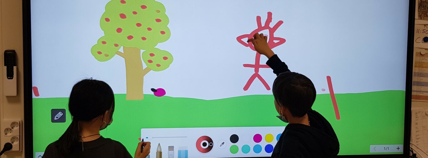 Kyllähän tämä on hieno oppimisympäristö. Olemme itse päässeet vaikuttamaan siihen, koko koulun henkilökunta ja jopa hieman oppilaatkin sen kaikissa vaiheissa. Eli hankesuunnittelusta lähtien tähän viimeisten vaiheiden niin sisustus- kuin kalustesuunnitteluun ja opetusteknologiaan. Vaikka kustannuksissa olikin tietyt reunaehdot, toteutuksessa on menty laatu edellä. Olemme kyllä erittäin tyytyväisiä siihen, mitä meillä täällä Myrskylässä nyt on. Kuvassa digitaalinen ”liitutaulu”.