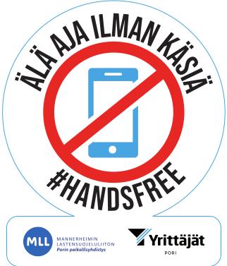 Yritykset voivat liittyä mukaan #HANDSFREE- kampanjaan ja sitoutua olemaan käyttämättä kännykkää autolla ajon aikana. Tule mukaan kampanjaan, ilmoita yrityksesi Lyyti-linkin kautta: www.lyyti.in/handsfree