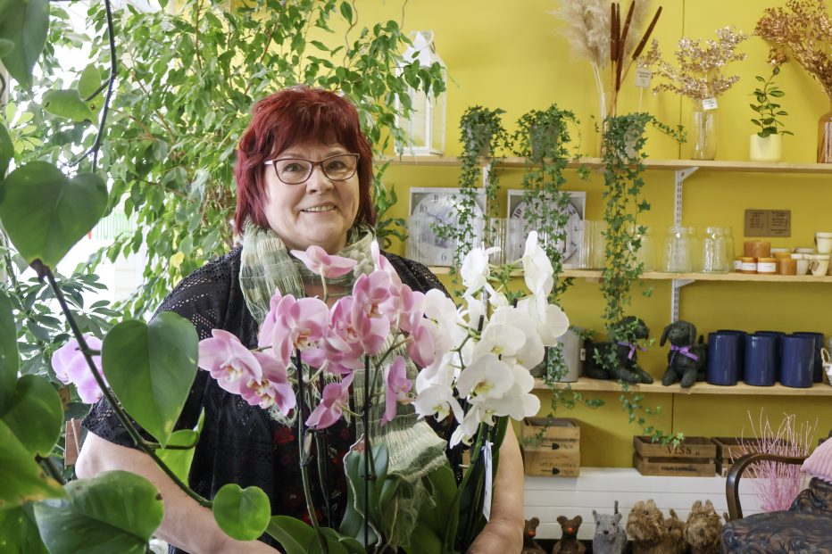 – Vaikka korona-aikana liikkeessä asiointi oli rajoitetumpaa, toimitusmyynti kasvoi varsin hyvin. Jonkin verran niin sanotut päivittäisasiakkaat ovat hiipuneet, mutta onneksi isompia heilahduksia ei ole tullut. Yksilöllisiä sidontatöitä arvostetaan ja ihmiset haluavat muistaa toisiaan, iloitsee Salmi.