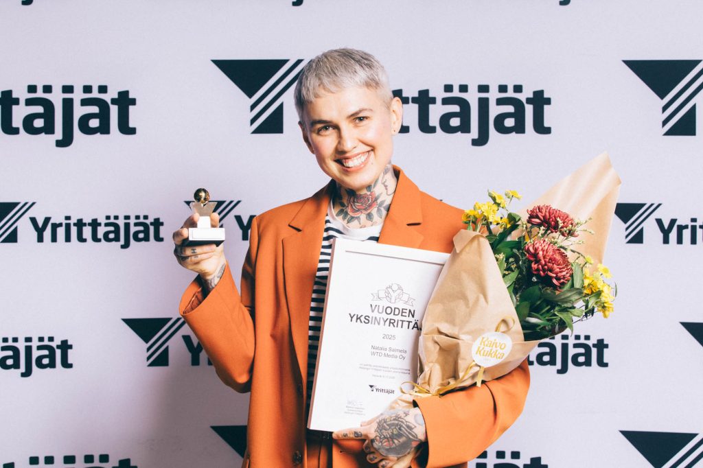 Tilaisuudessa jaettiin Helsingin Yrittäjien alueellinen tunnustus menestyksekkäästä yksinyrittäjyydestä. Vuoden helsinkiläinen yksinyrittäjä 2025 -palkinnon voittajaksi valittiin Natalia Salmela, WTD Media Oy. Lue lisää palkitusta yrittäjästä täältä.