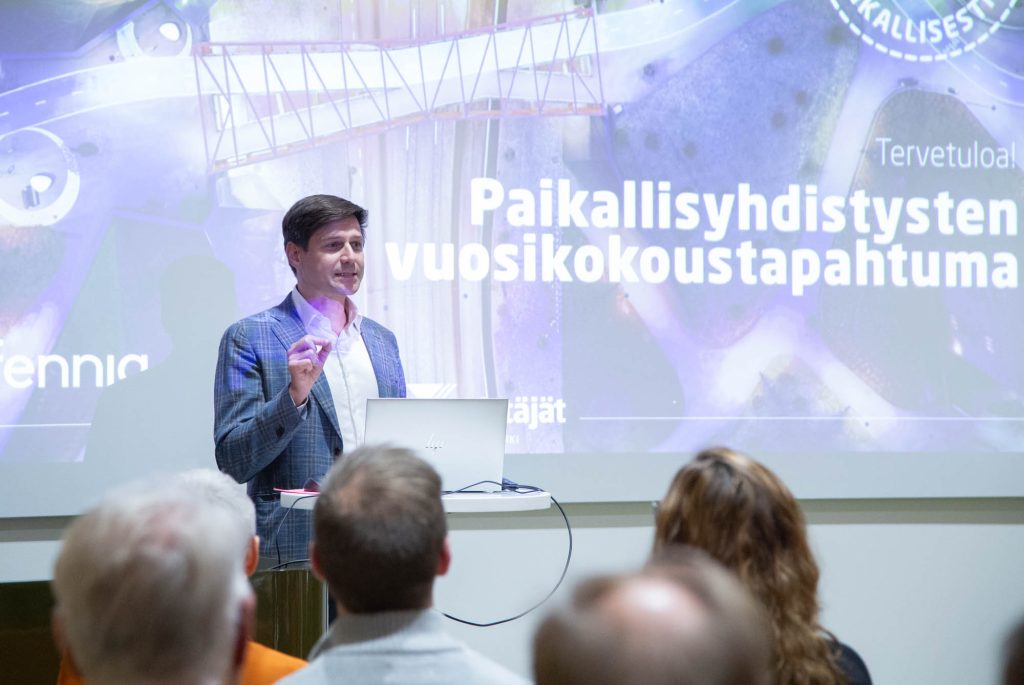 Yhteisen osuuden avasi Helsingin Yrittäjien puheenjohtaja Markus Seppänen, joka kiitti paikallisyhdistyksiä onnistuneesta yhteistyöstä vuoden aikana.