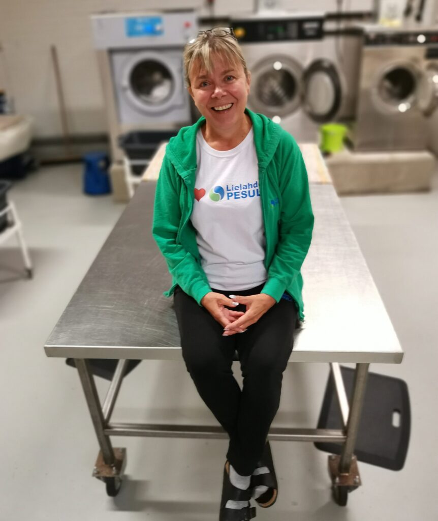Nykyiseen työpaikkaansa, Lielahden Pesulaan hän oli tutustunut asiakkaana jo aiemmin. Hänellä kun oli tapana käydä ostamassa täältä pesuaineet. Oma koti sijaitsi lähellä, ja pesulalla oli käytössä hajusteettomat laatuaineet, joita hän kotonaan käytti.