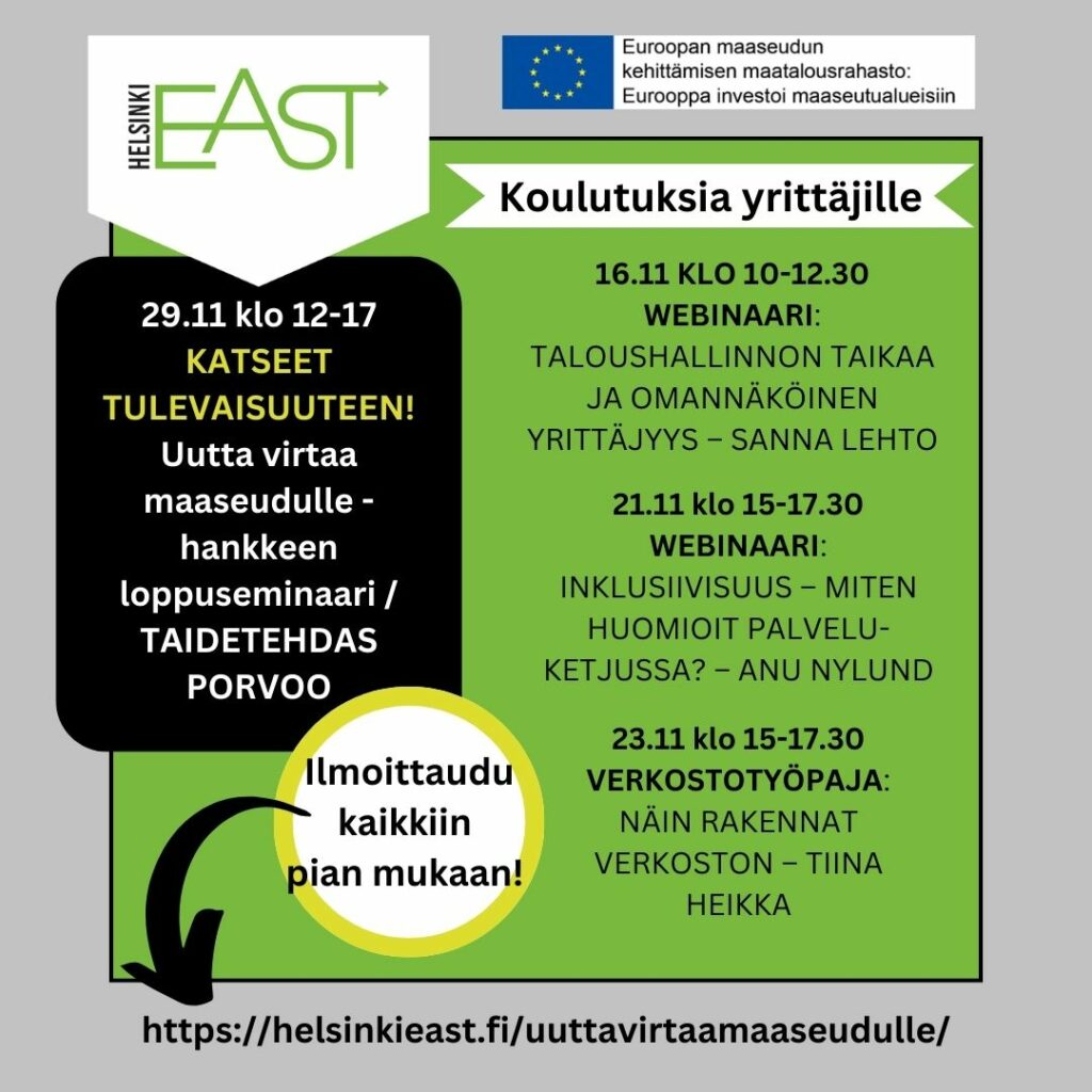 Voit ilmoittautua mukaan täällä! https://helsinkieast.fi/uuttavirtaamaaseudulle-koulutukset/