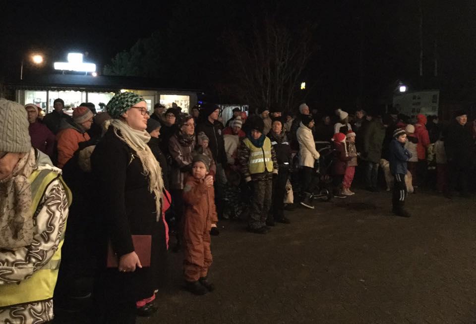 Joulunavaukseen saapui väkeä runsaasti, vaikkei ilma mikään jouluinen ollutkaan.