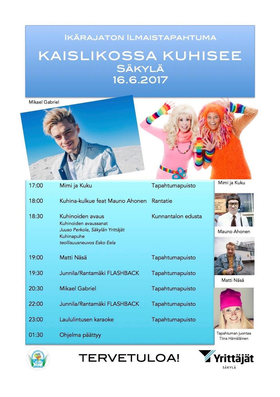 Kaislikossa Kuhisee 2017 pääesiintyjänä oli Mikael Gabriel